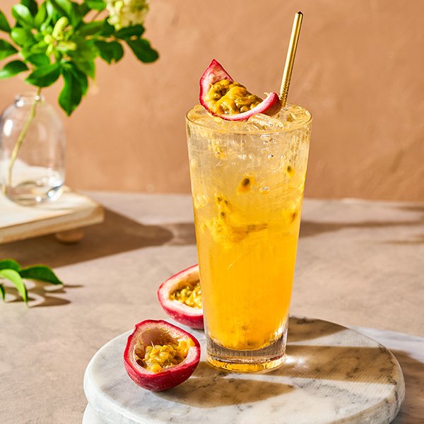 Tie Guan Tin Tea (Oolong) | Passion Fruit Syrup | Fresh Passion Fruit | Sparkling Water