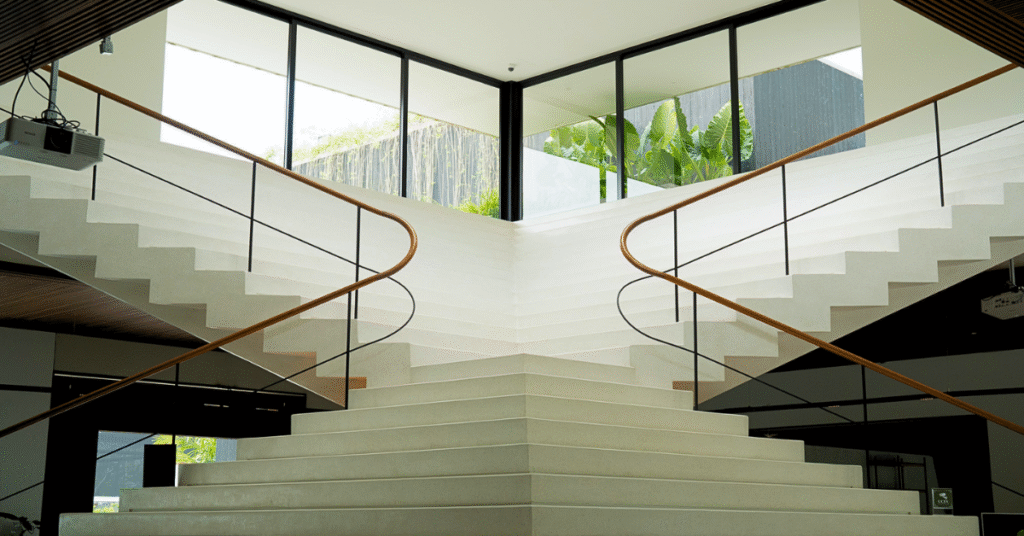 A: The key differences include an open-space layout, trees integrated into the architecture, warm natural materials, and a controlled pace that never feels rushed. It’s designed as a functional green space, not just a decorative one.