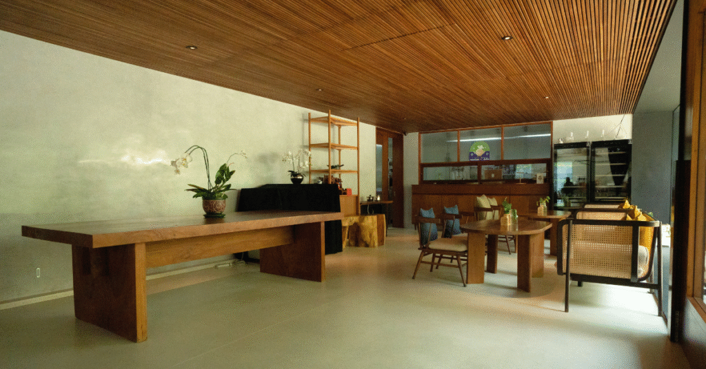 Q: What makes Tree O’Clock different from other cafés? A: Tree O’Clock offers a peaceful atmosphere with large trees, cool breezes, soft music, and a harmonious blend of wood, nature, and art. It also features a Gallery Space displaying rotating artwork from local and international artists.